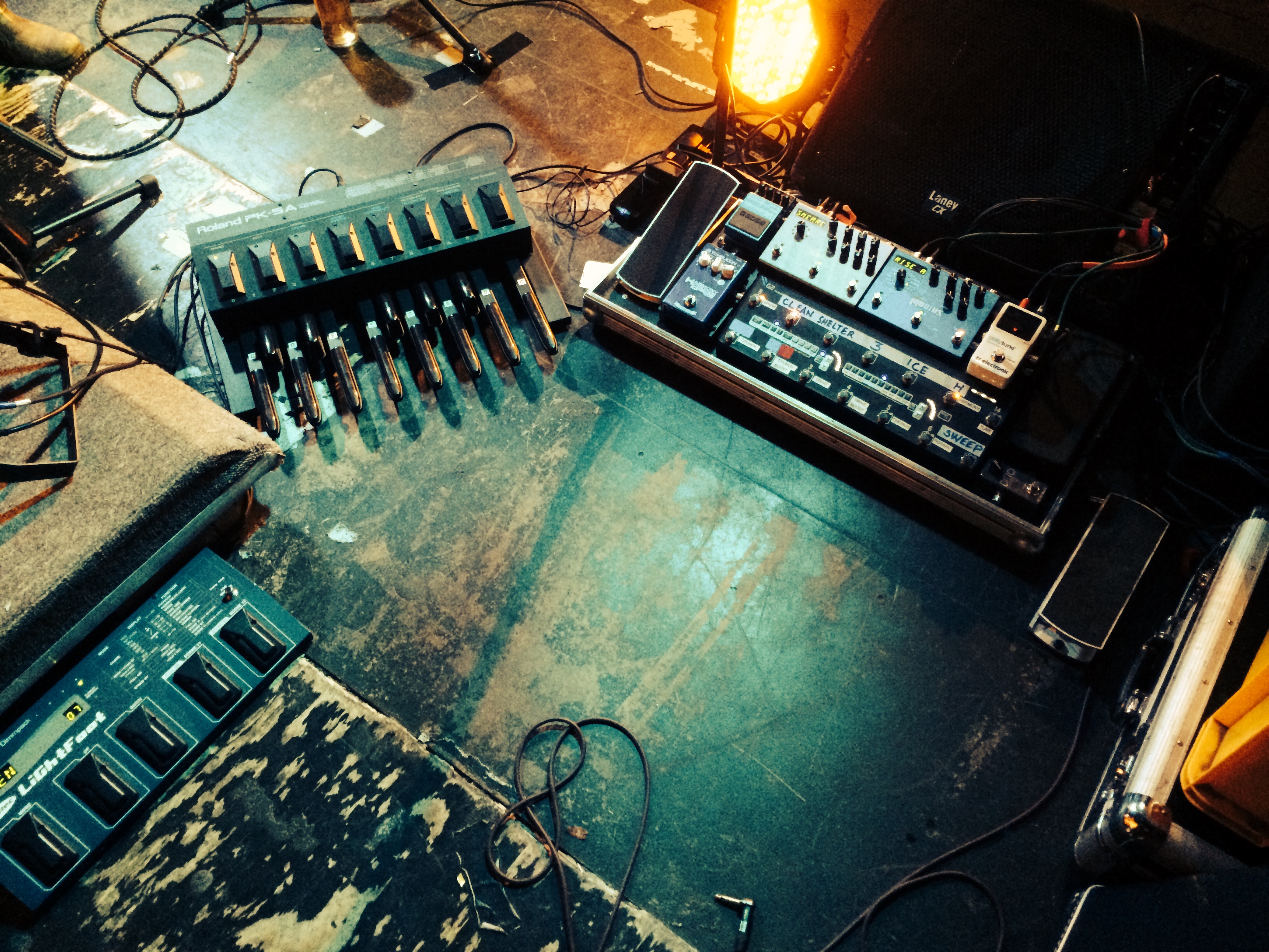 Custom built 2-tier pedalboard.