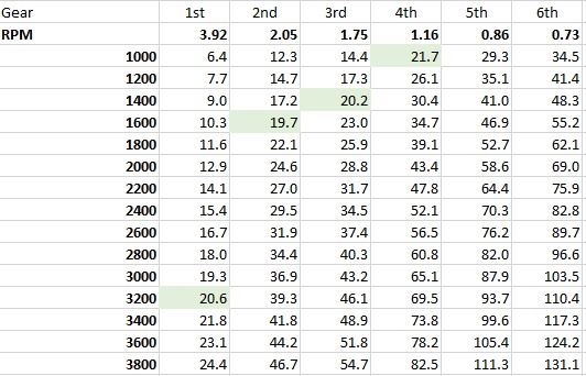 Let’s say that our car requires 1500rpm in third gear to maintain 30mph.