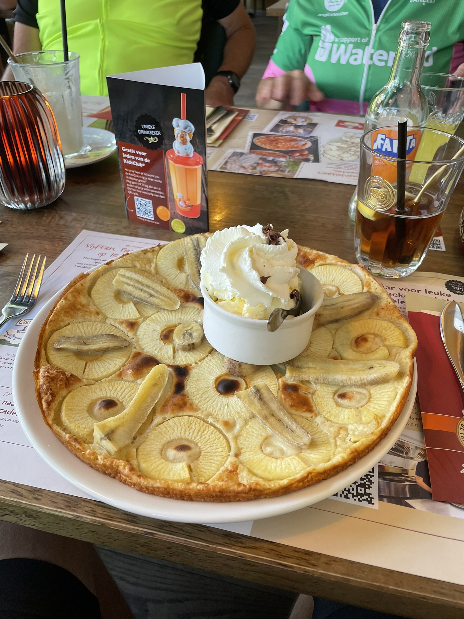 Luckily, the lunch stop was in the Netherlands, so I had an apple & banana pancake with lashings of slagroom; frites are just so Belgian.