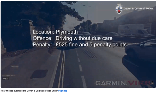 However, they were prosecuted for driving without due care and attention, fined and their licence endorsed.